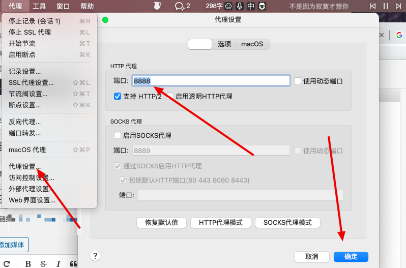 - Mac安装Charles之后,按照图示操作,设置抓包端口为8888